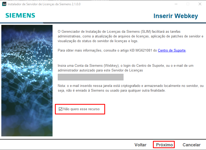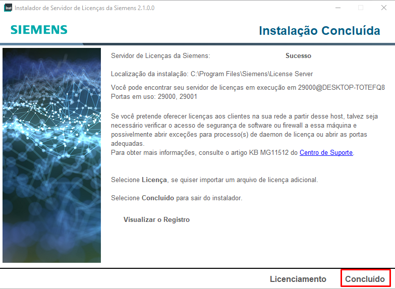 Download e instalação do Siemens License Server v2