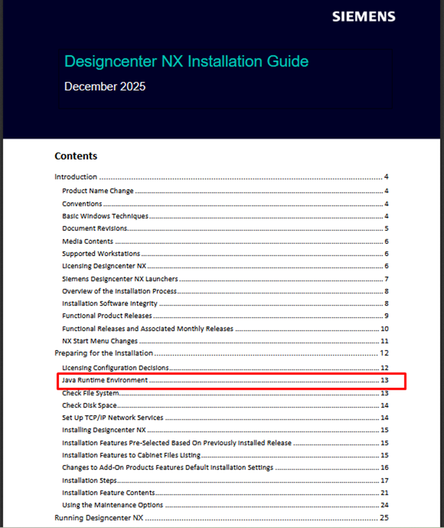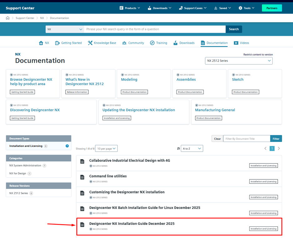 d) Clique em Designcenter NX Installation Guide December 2025;