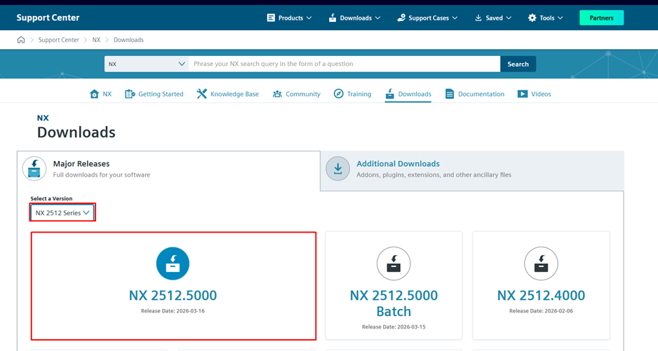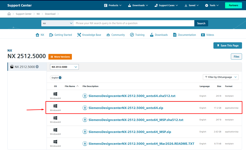 e) Clique em SiemensDesigncenterNX-2512.5000_wntx64.zip;