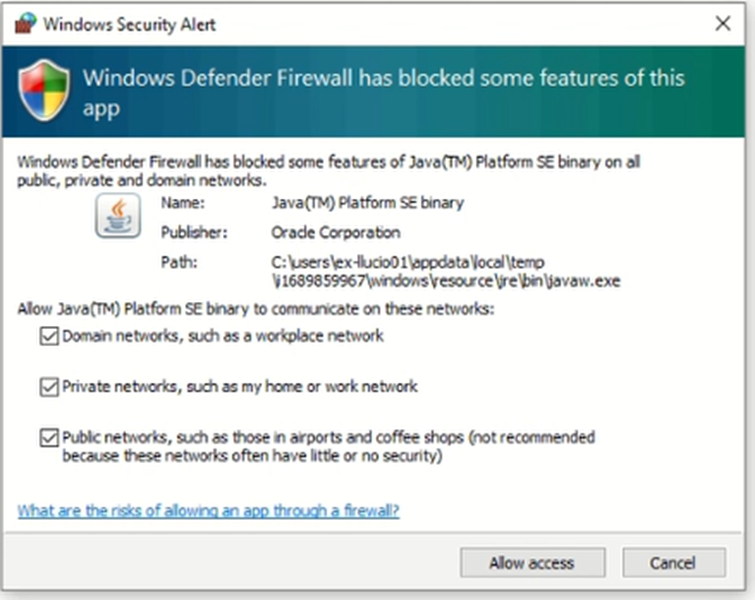 d) Durante o processo de instalação, sempre que aparecer o alerta do Windows Security é essencial que marque e libere todas as opções.