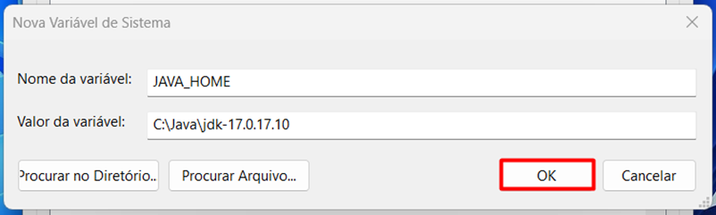 d) Crie a Variável: JAVA_HOME= C:\Java\jdk-17.0.17.10;