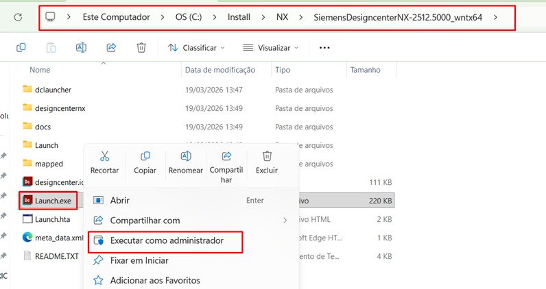 a) Descompacte a pasta SiemensDesigncenterNX-2512.5000_wntx64.zip;