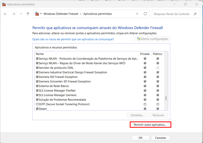 busque por Permitir um aplicativo pelo firewall do Windows;