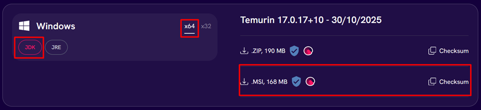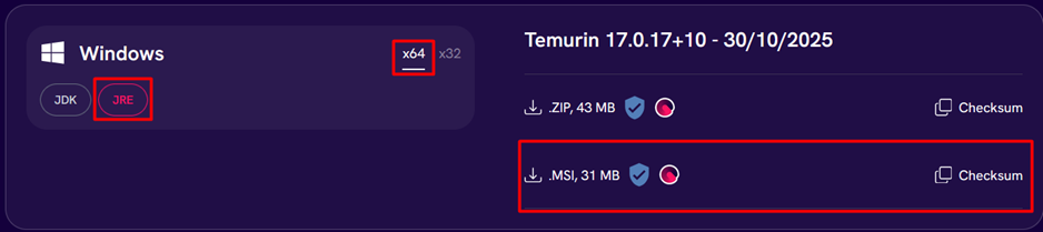 botão direito no arquivo OpenJDK17U-jre_x64_windows_hotspot_17.0.17_10.msi e